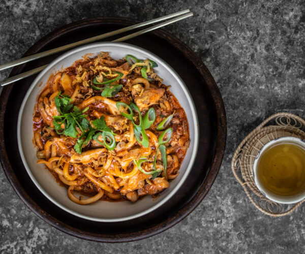 Cremige Chicken Udon mit koreanischer Gochujang, Limette und Honig