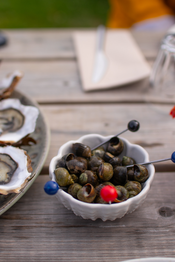 Was jedoch jeder erleben kann, der Alain besucht, sind seine wunderbaren Austern und Muscheln (zumindest von April bis Ende Oktober). Und für alle jene, die jetzt nicht so verrückt nach Austern sind, gibt es auf der Karte auch eine herrliche hausgemachte Pastete. Die kleinen Muscheln, die man mit einer Nadel aus ihrer Schale pult, schmecken übrigens grandios auf Butterbrot.