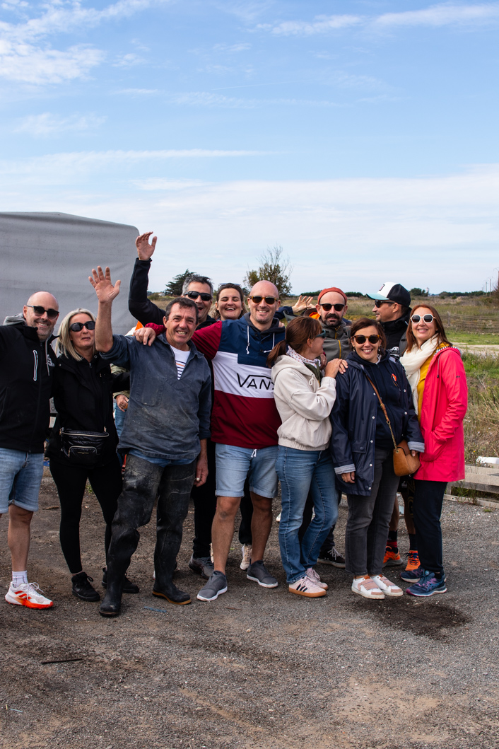 Mittlerweile sind wir auf unserer Fahrt weiter unterwegs zu den Austernbänken. Die mitgebrachten Kühltruhen werden geöffnet und es wird Baguette mit Rillette, Käse und Schinken verteilt. Vom Weißwein ist man jetzt zum Rotwein übergegangen. Schmeckt auch toll. Dazu knabbere ich Erdnuss-Flips, die seien sehr französisch wird mir erklärt. Soll ich jetzt erwähnen, dass ich mit Erdnuss-Flips aufgewachsen bin? Vielleicht liegt es daran, dass ein Teil meiner Heimatstadt von Franzosen besetzt war, doch das ist, glaube ich, eher weniger der Grund. Ich kenne niemanden, der Erdnussflips nicht mag. Außerdem – Austern und Erdnussflips – wer kann dazu Nein sagen? Ich bin jetzt ein Teil der Gruppe. Es wird immer fröhlicher.