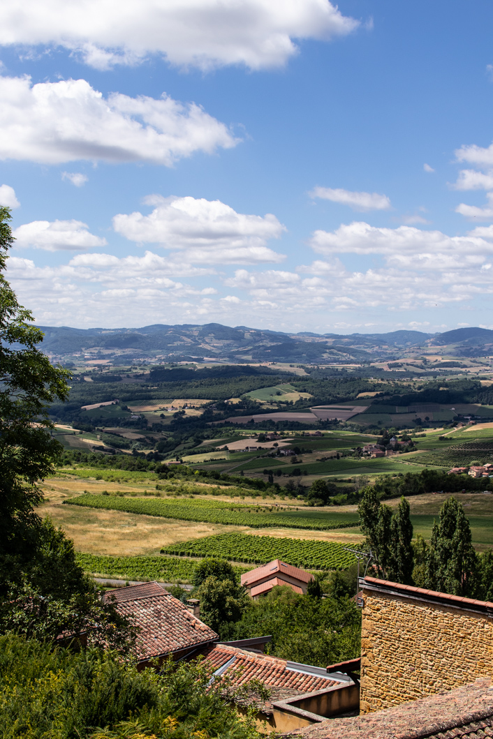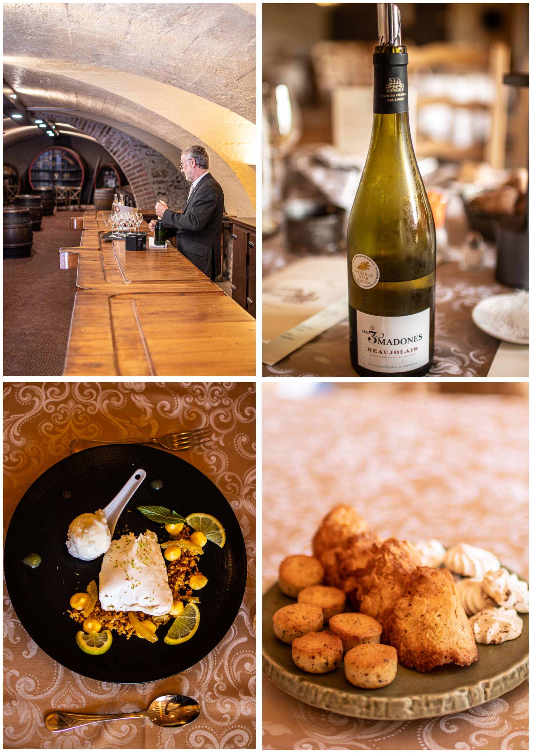Flirrende Mittagshitze über den Weinbergen, die Sehnsucht nach kühlen Kellern ist groß. Und hier begegne ich den Weinen aus dem Beaujolais zum ersten Mal auf dieser Reise. Meist fällt einem bei Beaujolais ja auch nur der Primeur ein, was bedauerlich ist, denn die Region hat viel mehr zu bieten. Sowohl moussierende Weine als auch satte, vollmundige Rotweine hauptsächlich aus der Gamay Traube. Das Restaurant des Châteaus bietet ein ausgezeichnetes Mittagsmenü (37 – 53€), welches ganz auf die Produkte der Region setzt. Klassisch-traditionelle französische Küche.