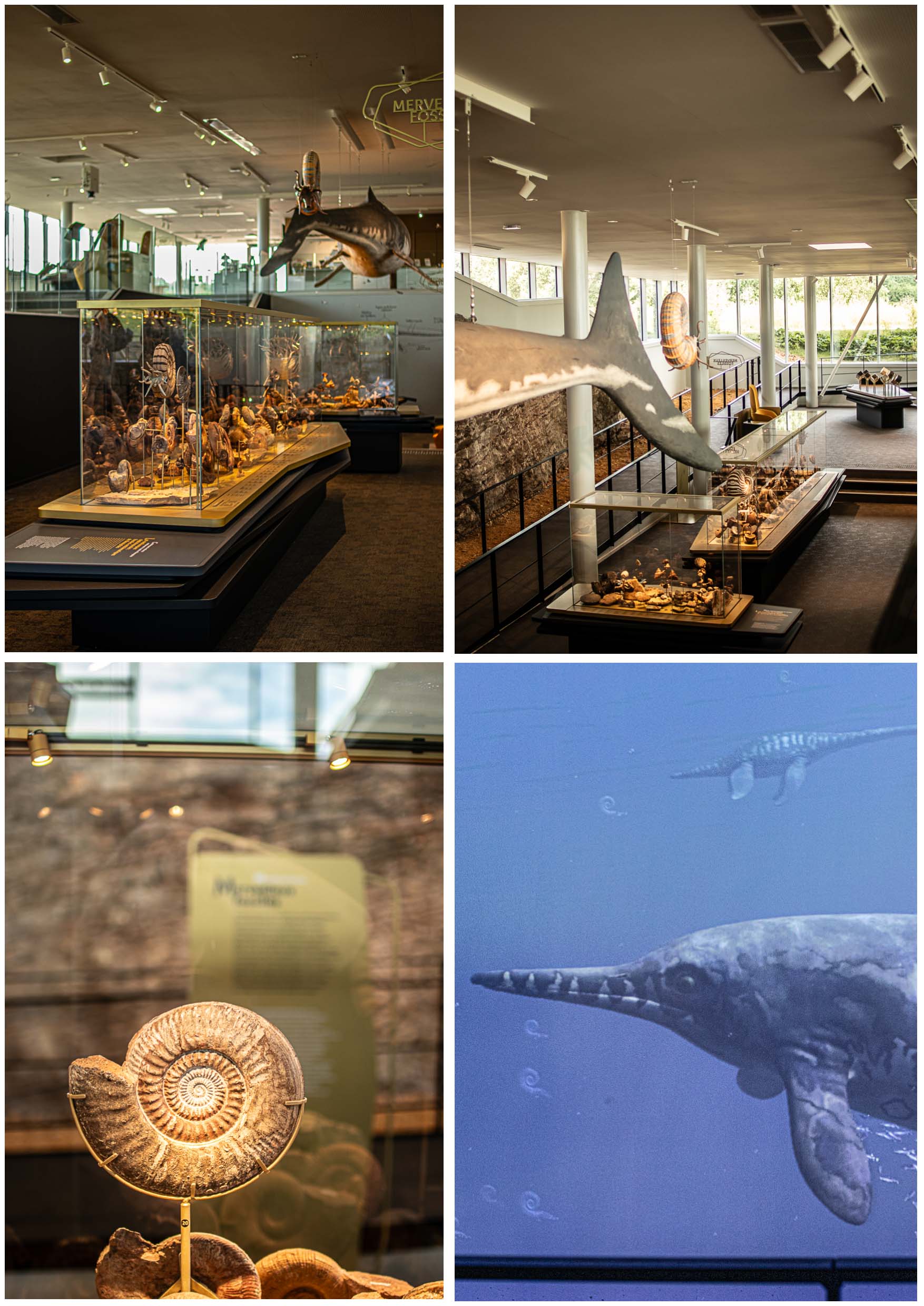 Ein bisschen fühle ich mich wie auf einem Schulausflug. Ich tauche ein in eine Zeit, die so unvorstellbar lang zurückliegt, wo noch ein Ozean die heutige Landschaft bedeckte und Saurier durch die Tiefen der Meere streiften. Erst vor kurzem wurde das Fossilea eröffnet und man merkt, wie sehr sich die Menschen, die hier arbeiten darauf gefreut haben, dass sie diese neue Welt endlich zeigen können. Das Highlight ist eine riesige gekrümmte Leinwand, die mir den Eindruck vermittelt, in einem Urzeitmeer zu tauchen. Die schwimmenden Saurier sehen gruselig aus und würden mich natürlich sofort fressen. Ein Hauch Jurassic Park ist also auch dabei. Das Programm und die Exponate sind jedoch nicht nur für Schüler spannend, sondern man begreift plötzlich, wie jung wir Menschen auf dieser Bühne sind.