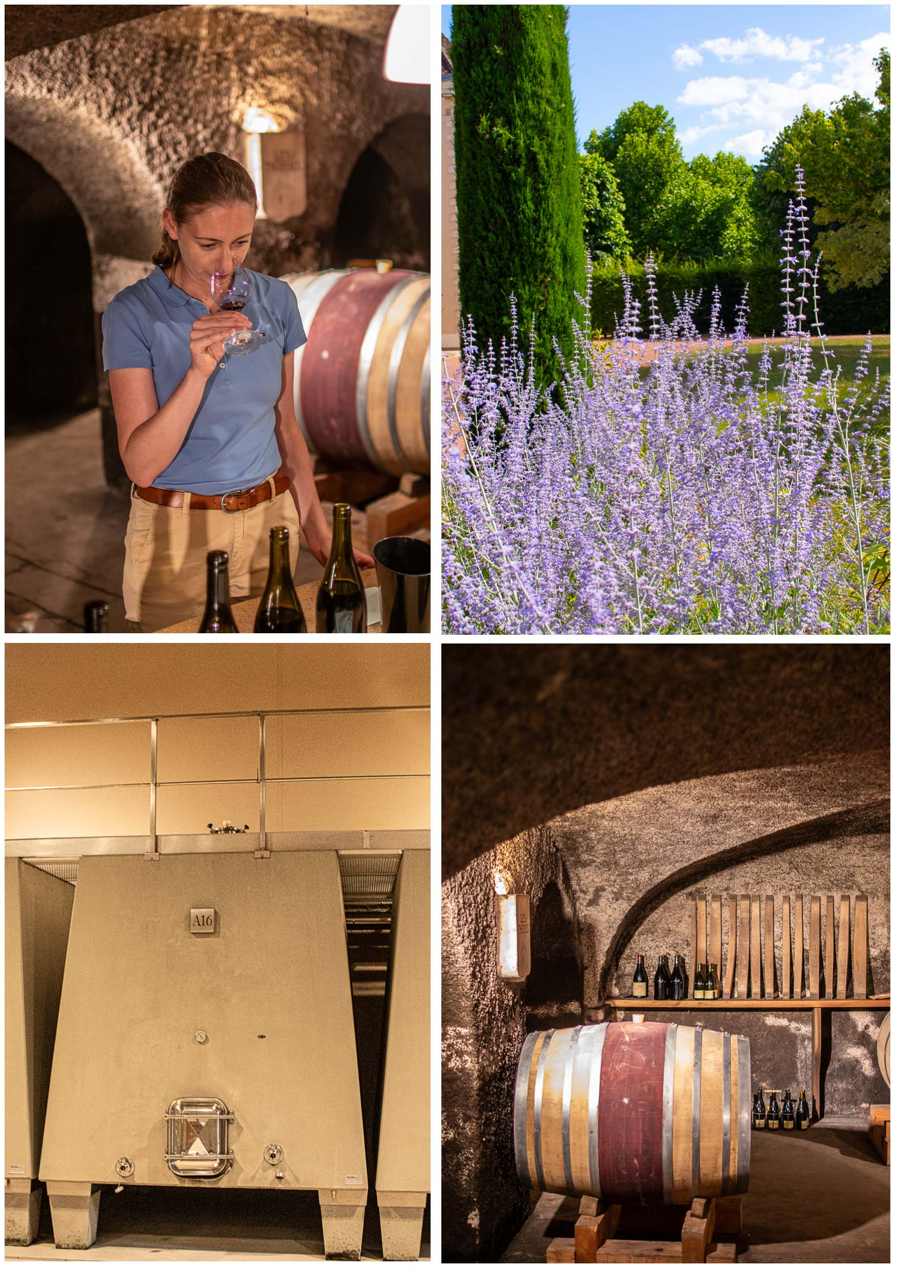 Das Château des Jacques ist ein Ort, an dem man sofort spürt, dass hier nicht einfach nur Wein gemacht wird. Es geht um Gamay, die Rebsorte, die oft unterschätzt wird und doch so viel mehr kann. Sie gehört zur Pinot-Familie, ist großzügiger, fruchtiger, weniger streng als ihr aristokratischer Cousin Pinot Noir – und passt wie geschaffen zu den kargen, granithaltigen Böden des Beaujolais. Das Weingut gehört zu den größten der Region, seit 1996 ist es im Besitz des renommierten Handelshaus Louis Jadot aus Beaune (Burgund). Damit schlägt es eine Brücke zwischen Burgund und Beaujolais. Wir gehen vorbei an den gewaltigen Betontanks, die wie graue Riesen aneinander gereiht stehen. Monumental und kühl – fast wie eine Kathedrale für den Gamay. Hier reift der Wein langsam, geschützt, und gewinnt jene Seidigkeit, die ihn so unverwechselbar macht. Im Keller dann, wo die Weine oftmals lange reifen, probiere ich verschiedene Jahrgänge aus berühmten Cru-Lagen wie Moulin-à-Vent, Morgon, Chénas und Fleurie. Julie Pitoiset, die Önologin, führt uns durch eine eindrucksvolle Reise aus samtigen Aromen mit teils satten Tanninen und mineralischen Noten.