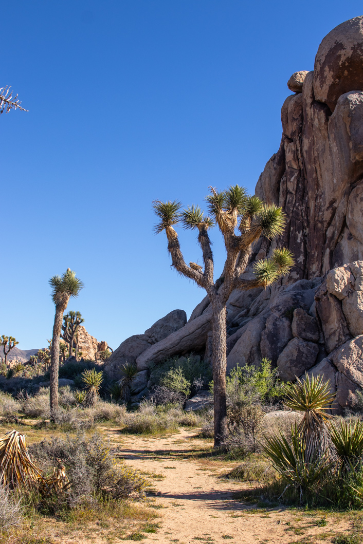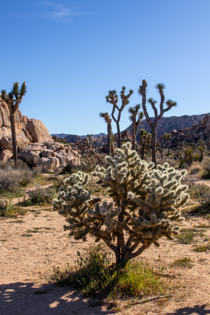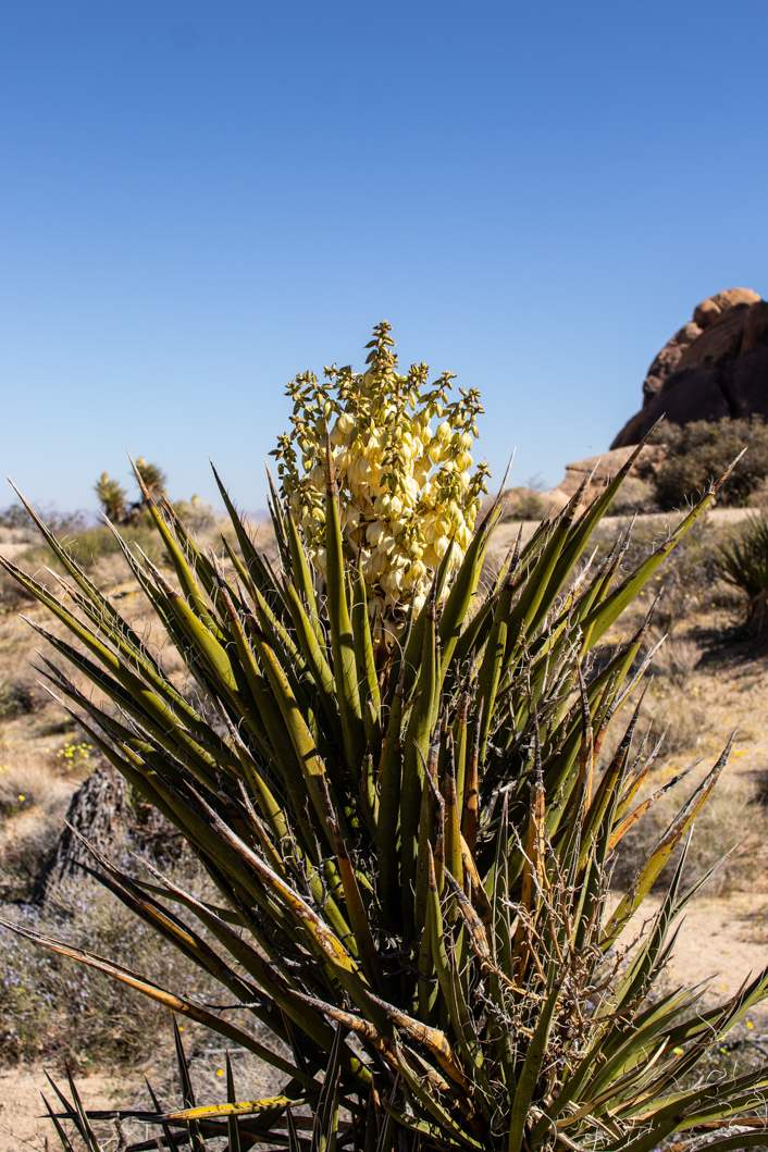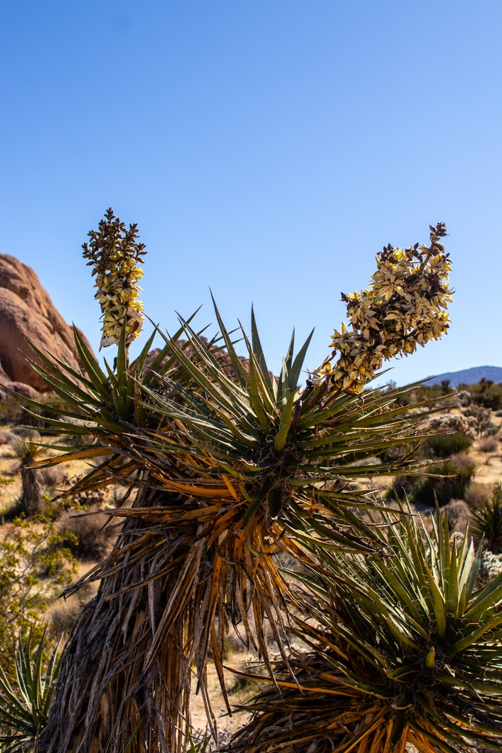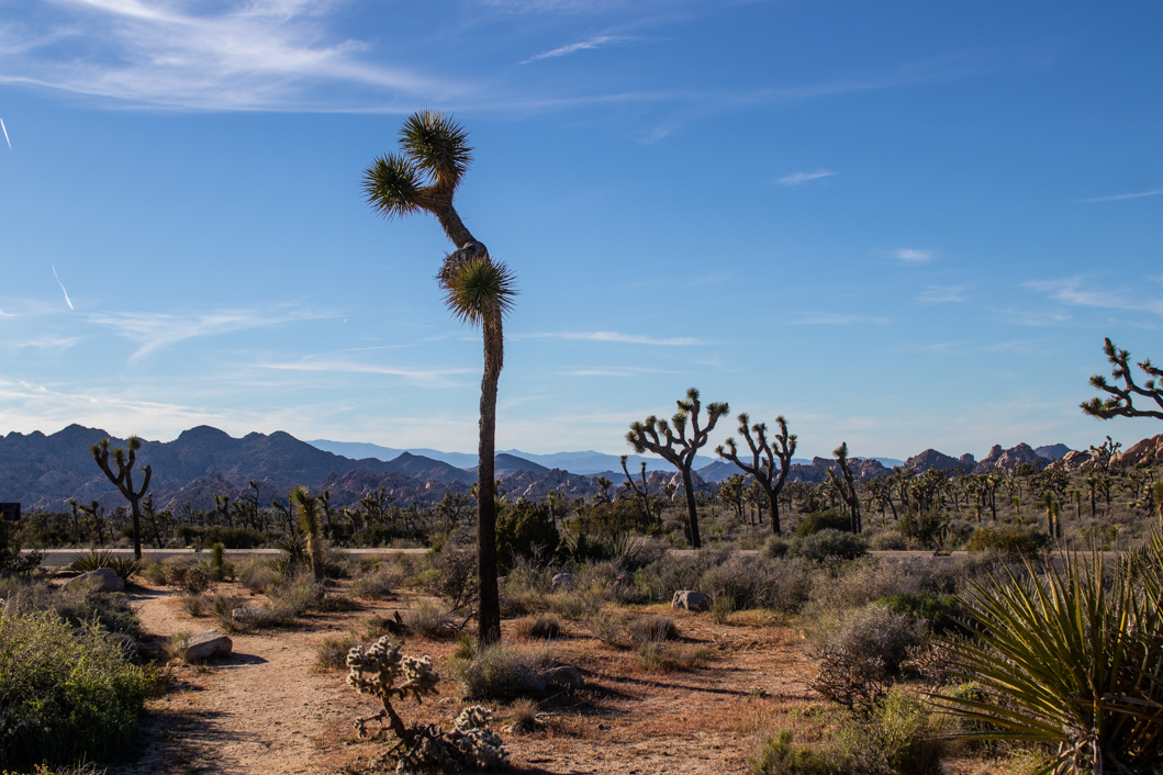 Das Besondere am Joshua Tree National Park sind seine – wie der Name schon vermuten lässt –Joshua Trees. Eigentlich sind es Yucca Palmen und wenn man es genau nimmt, sind die verwandt mit Spargel. Also rein theoretisch, bin ich hier umgeben von einem Vertreter der Spargelfamilie. Der Joshua Tree heißt botanisch Yucca brevifolia und gehört zur Familie Asparagaceae, also zur den Spargelgewächsen. Innerhalb dieser Familie sitzt Yucca in der Unterfamilie Agavoideae — also bei den Agavenverwandten. Soviel zur Botanik.
