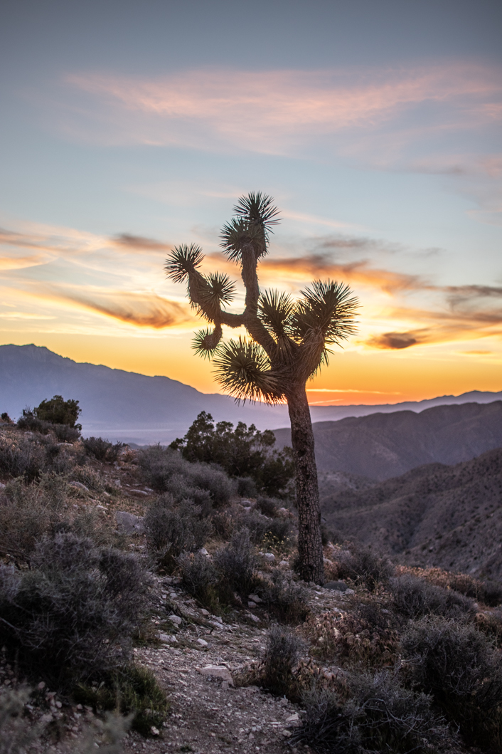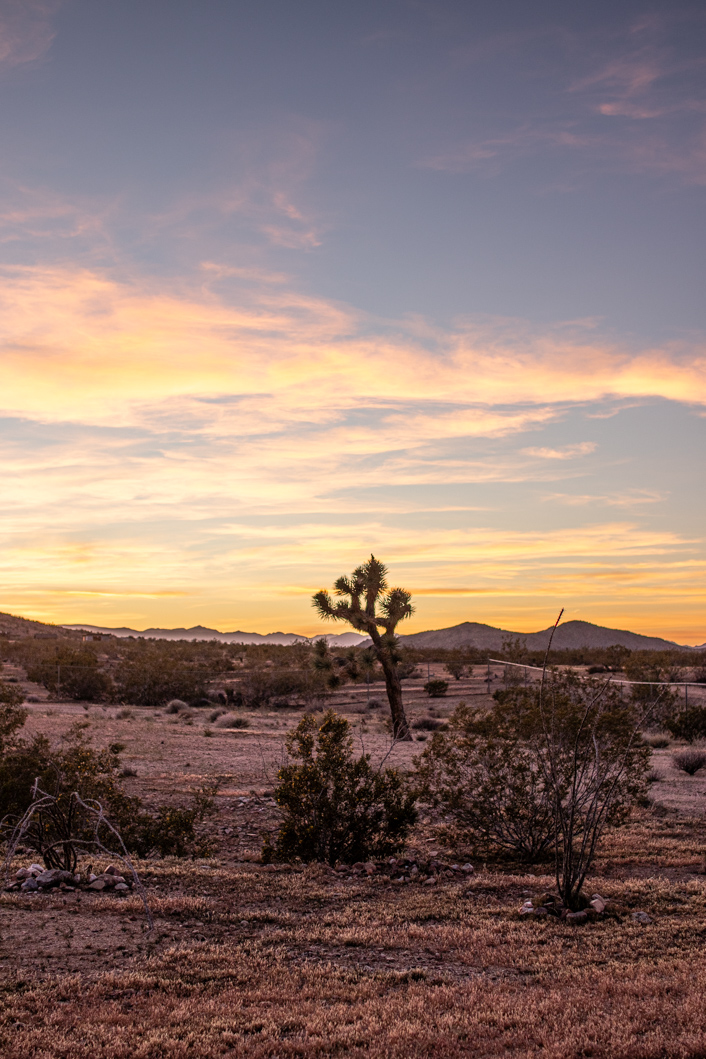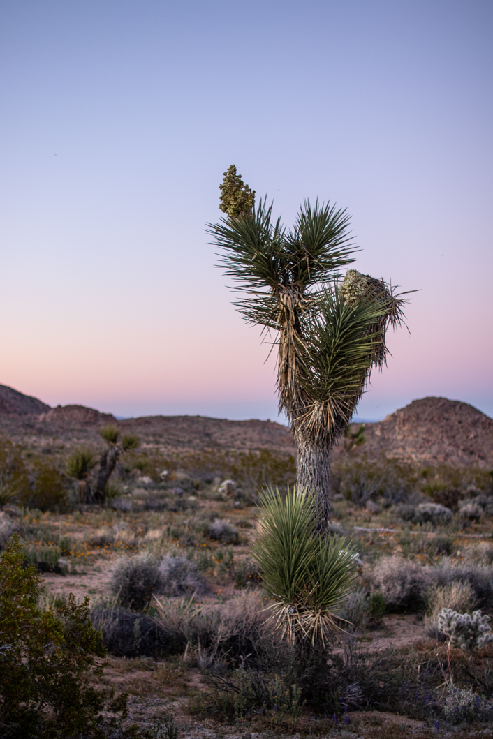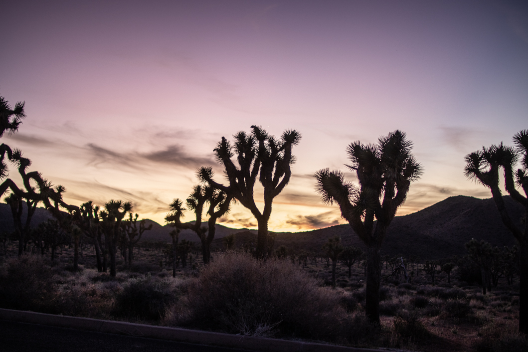 Der Himmel verfärbt sich von Orange zu Lila zu Tiefblau. Im letzten Licht des Tages wirken die Joshuas Trees wie Wächter der Wüste, die mit ausgebreiteten Armen die Nacht begrüßen. Zum ersten Mal wünsche ich mir eine Sitzheizung, denn nach dem Sonnenuntergangsspektakel bin ich ordentlich durchgefroren. Was gäbe ich jetzt für einen Tee mit Rum.