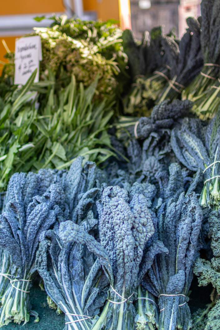 Es geht nach Hollywood! Sonntagmorgens ist das mit dem Verkehr hier auch annährend normal fließend und ich entdecke, dass Autofahren in LA großen Spaß macht. Es sind auch nur 14 Kilometer bis zu eben jenem Bauernmarkt, der als der beste der Stadt angepriesen wird. „Not to miss“ also. Ich verzichte auf das Frühstück, weil es hier neben den reinen Gemüse- und Obstständen auch genügend Stände mit voll gesunden Snacks und leckeren Gerichten gibt. Ein Miso gefülltes Onigiri zum Beispiel, das auf einem Holzkohlegrill angebraten wird. Oder ein Sandwich mit Cashew-Kräutercreme. Gleich neben den ersten Ständen auf dem Markt spielt eine Band und schnell wird klar, dass dieser Markt schon ziemlich in Richtung „Happening“ geht. Und irgendwie ist das ja auch schön, beim Betrachten von buntem Kohl ein bisschen Blues zu hören. Hier unterhalte ich mich am Olivenstand lange mit dem Besitzer, der mir ein herrliches Pesto nach dem anderen anbietet. Schwach werde ich letztendlich bei seinem Meyer Lemon-Pesto, ein Pesto aus den aromatischen Mandarinen-Zitronen, die es bei uns nur im Spätherbst (mit viel Glück) zu kaufen gibt. Es ist wirklich atemberaubend gut. Und damit es auch zusammen mit einem Chili-Crunch Öl sicher nach Deutschland reisen kann, wird es besonders gut eingepackt.
