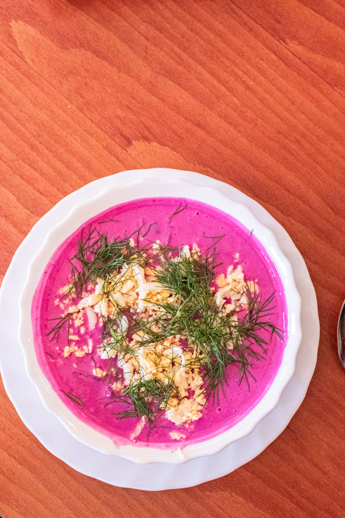 Wer Lust auf eine Zeitreise hat, geht in Viljandi ins Café, das so heißt, wie der ganze Ort – Viljandi. Das Interieur ist eine Mischung aus Ostblock, Bahnhofshalle und alles im Stil siebziger Jahre. Im vorderen Bereich kauft man seinen Kuchen und an den Tischen kann man sich Schnitzel, belegte Brote, Soljanka und kalte Rote Bete Suppe bestellen. Diese Suppe hat es mir angetan (ein Rezept dazu gibt es hier auf dem Blog), ich habe sie jedoch nie da gegessen, wo sie eigentlich ihren Ursprung hat. Und auch wenn sie in den Nachbarländern Litauen und Lettland noch ein bisschen populärer ist, ist das auch hier in Estland eine überaus beliebte Sommersuppe. Und Mitte September ist es immer noch warm genug, dass man Sommersuppe essen kann. Kefir, Rote Bete, eingelegte Gurken, Ei und Dill sind die Hauptakteure. Sie schmeckt umwerfend gut diese Suppe. Allein schon für diese Suppe hat sich der Weg hierher gelohnt.