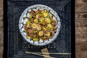 Und das soll jetzt also zusammen mit Rindfleisch und Gemüsen geschmort werden? Ich wollte es ausprobieren. Vorher nippte ich kurz an der Limonade und befand, dass sie eigentlich ein bisschen wie Cola schmeckt in die man einen Schuss Worchestershire Sauce oder Maggi gekippt hatte. Nicht uninteressant. Trotzdem ein bisschen gruselig.