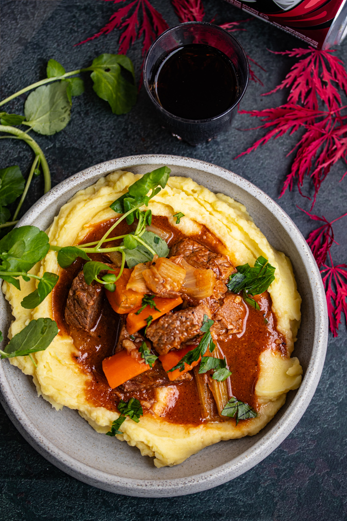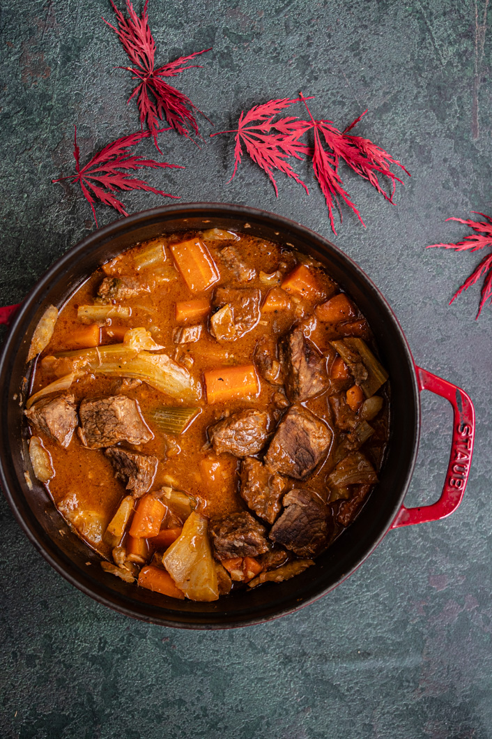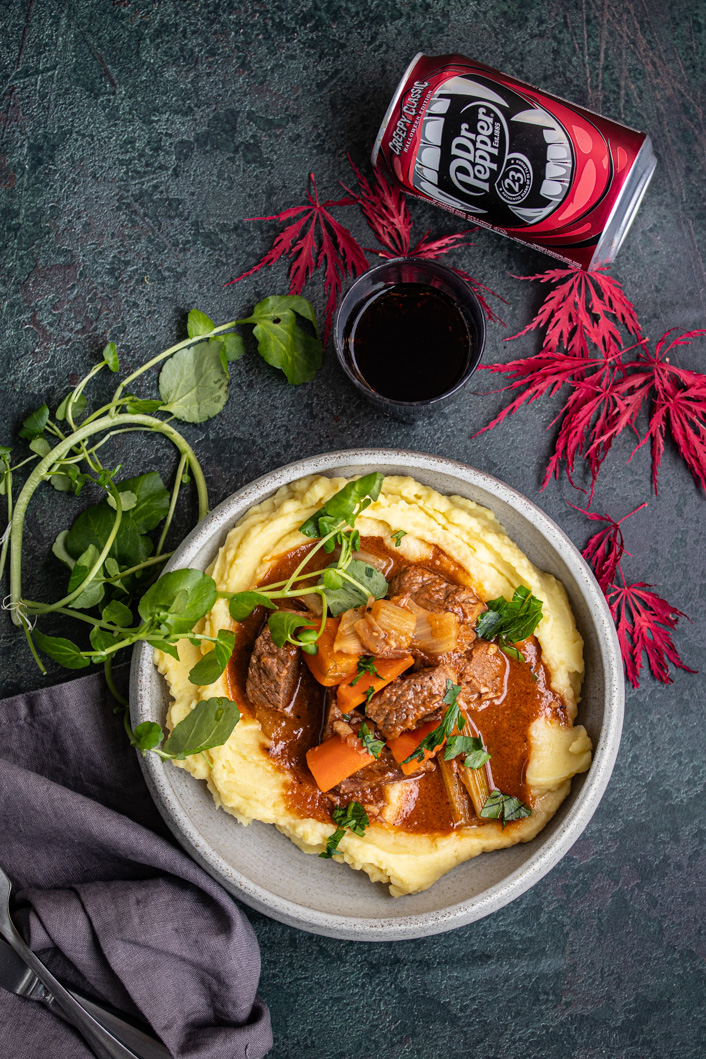 Geschmortes Rindfleisch mit Dr Pepper Limonade, Gewürzen, Fenchel und Karotten