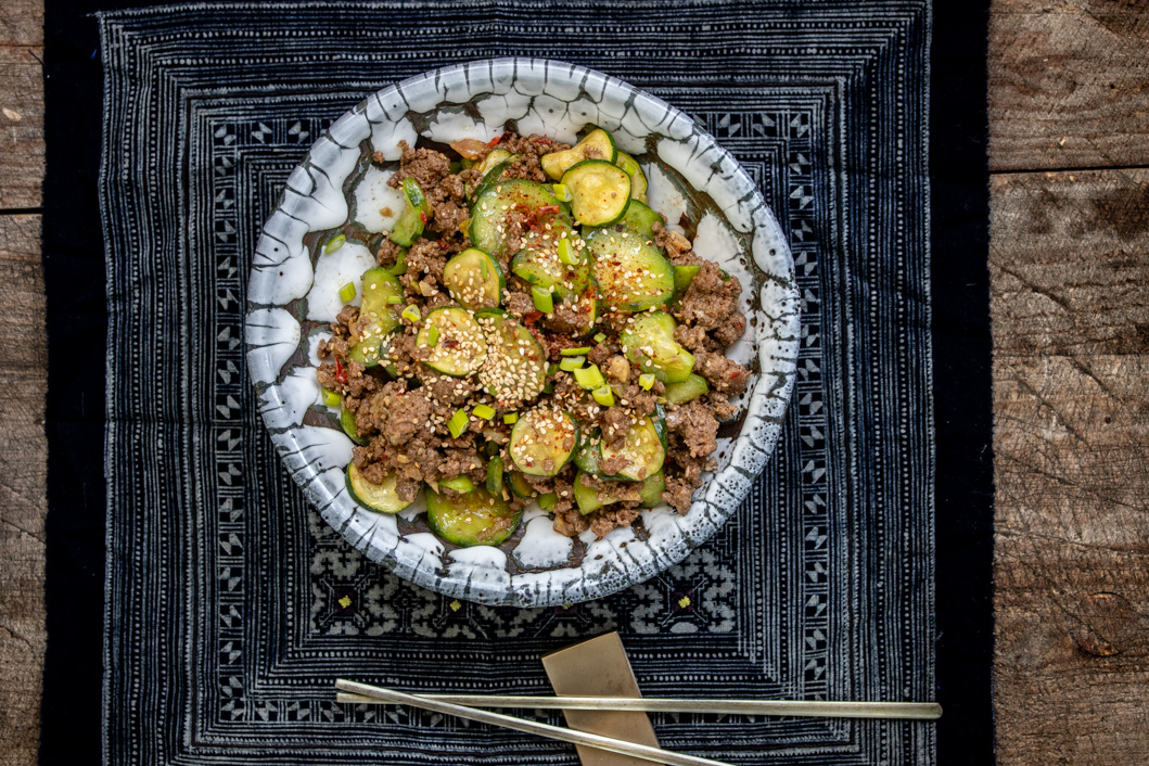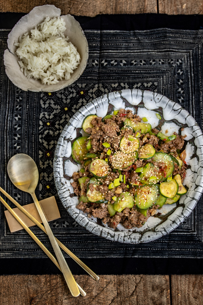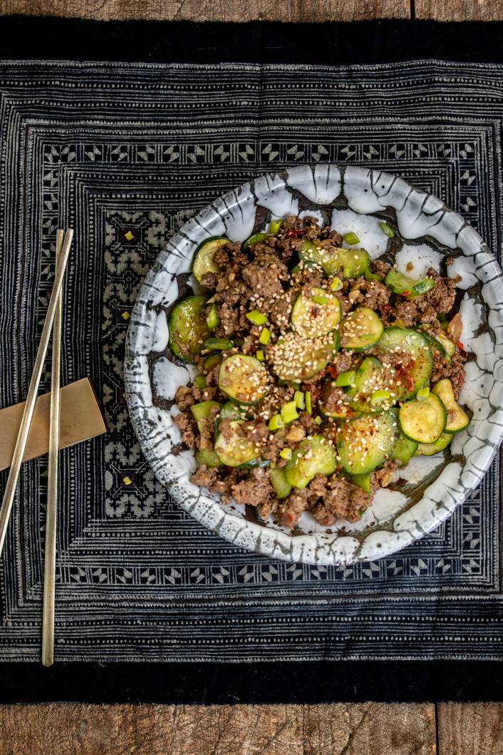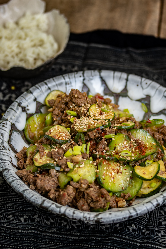 Koreanisches Rindfleisch mit Gurken und Zucchini