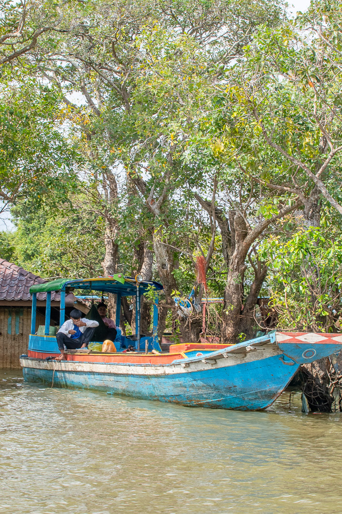 Der Weg nach Kampong Phluk im Tuk-Tuk ist manchmal ein wenig holprig. Nach der Regenzeit sind weite Teile des Landes überschwemmt. Bäume ragen aus dem Wasser. Der große See Tonle Sap ist noch nicht zu sehen. Was allerdings auffällt, ist der Müll. Dafür scheint das Bewusstsein hier noch nicht sonderlich ausgeprägt zu sein. Das Tuk-Tuk bringt mich nur bis zur Anlegestelle. Von hier aus geht es mit dem Boot weiter. Auch hier sind nicht viele Boote unterwegs. Was zuerst auffällt, ist das große Schild, wo um Trinkgeld gebeten wird. Ich sitze allein mit dem Guide und dem Bootsführer im Boot, es könnte entspannt sein, ist es aber nicht. Ich habe den Eindruck, es soll möglichst schnell über die Bühne gehen. Hin zum See, dort eine kleine Runde, dann schnurstracks wieder zurück an den ärmlichen Hütten auf Stelzen vorbei. Das Schönste war eine Gruppe lachender Schülerinnen, die – natürlich mit einem Boot – direkt aus der Schule kamen. Fröhliche Teenager, denen es egal war, ob sie eine Attraktion für Touristen sind. Die Armut der Menschen ist hier besonders präsent und ich fühle mich nicht besonders wohl dabei. Elendstourismus, denke ich. Aus dem trüben Wasser ziehen sie ihre Netze, damit sie die darin gefangenen winzigen Fische zu Fischsauce verarbeiten können. Später am Abend überlege ich, ob sich die fast einstündige Fahrt dorthin gelohnt hat und komme zu dem Schluss, dass ich besser nochmal die Tempel besucht hätte.